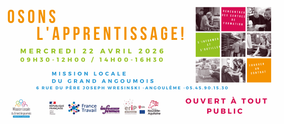 Forum « OSONS L’APPRENTISSAGE » le 22 avril 2026 au sein de la Mission Locale du Grand Angoumois.