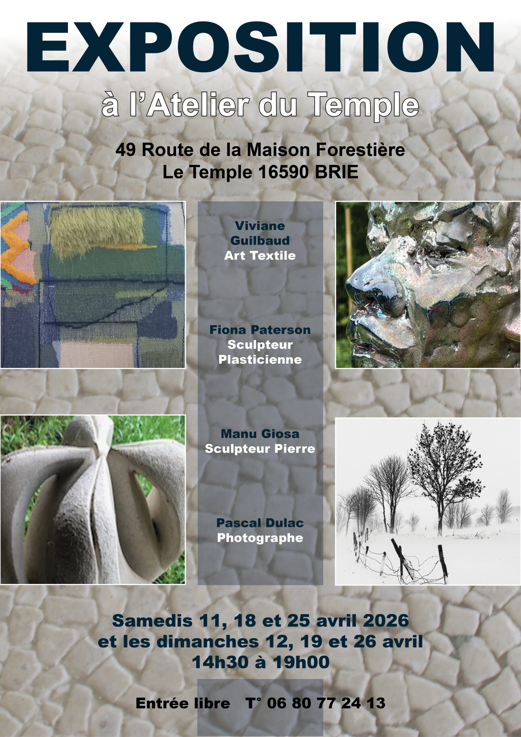 0 évènement, | 0 évènement, | 0 évènement, | 0 évènement, | 0 évènement, | 1 évènement,![]() contemporaines de Viviane GUILBAUD et exposition des artistes : Fiona Paterson, sculpteur plasticienne, Manu Giosa, sculpteur pierre et Pascal Dulac photographe. Elle expose aussi ses tapisseries et sculptures Les SAMEDIS 11, 18 et 25 AVRIL et DIMANCHES 12, 19 et 26 AVRIL Entrée libre de 14 h 30 à 19 h ou sur rendez-vous VERNISSAGE VENDREDI […] | 2 évènements, - ![]() Tarifs : Adulte 22 € (sans les vins) Enfant jusqu’à 12 ans : 10 € Inscriptions avant le 2 avril au 06 23 21 88 92 |